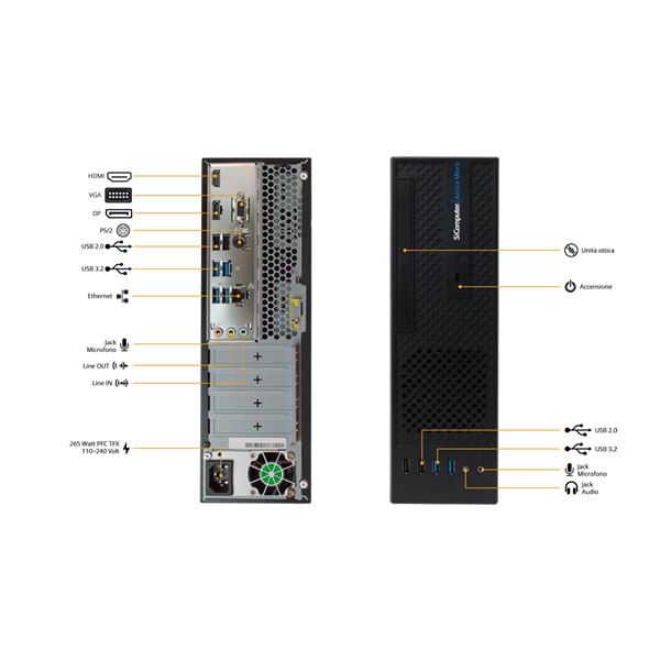 All’interno di un piccolo case di meno di 7 litri di volume stupiscono le prestazioni dei processori Intel® Core™ e la sicurezza della garanzia 24 mesi on-center, estendibile a 36 mesi; queste peculiarità lo rendono uno strumento facile da configurare e ideale per innumerevoli applicazioni.